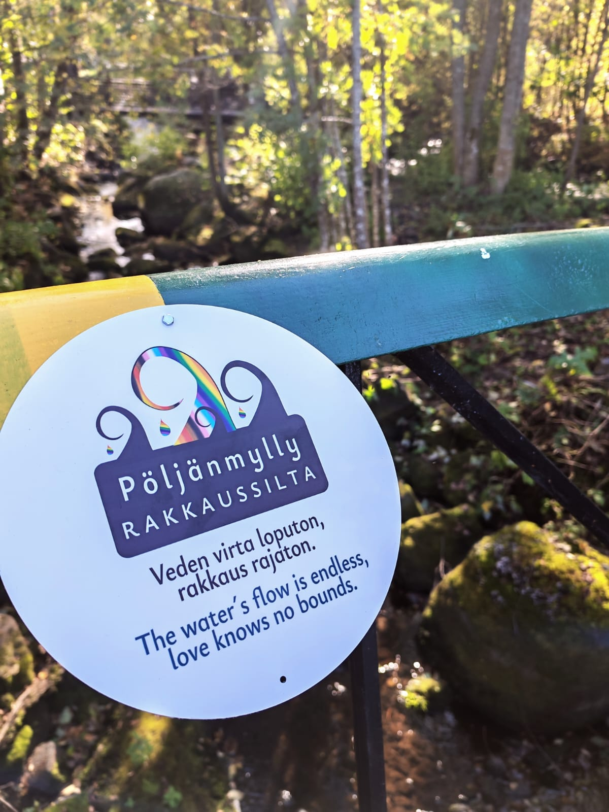 Pride-silta toimii myös rakkauslukkosiltana, johon myllyn majoittujat voivat halutessaan jättää oman rakkaus- tai ystävyyslukkonsa! Voit pyytää kaivertimen lainaan majoittajalta. Sopivan lukon koko on vähintään 60mm, joten ihan pikkulukot eivät tähän siltaan sovi.